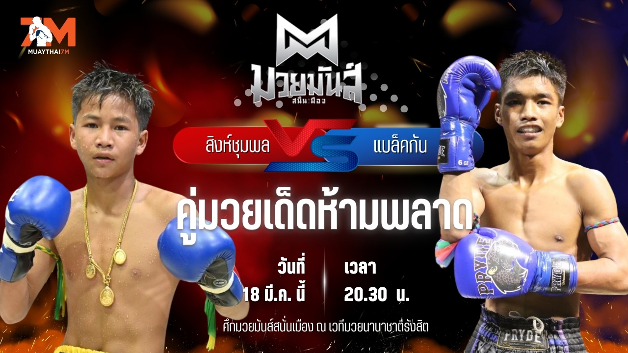ศึกมวยมันส์สนั่นเมือง ช่วงที่ 2 เวลา 20:15 น.สิงห์ชุมพล น.อนุวัฒน์ยิม